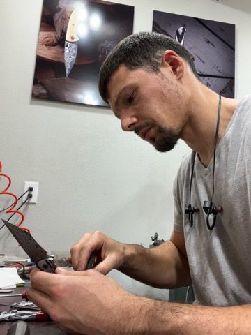 Jonas Iglesias, the artisan behind JIKnives, is a skilled custom knife maker renowned for his innovative designs and meticulous craftsmanship. With a decade of experience, Jonas has established a reputation for creating knives that blend functionality with artistry. His work is characterized by ergonomic handles, distinctive recurved harpoon blades, and the use of high-quality materials such as titanium, carbon fiber, and Damascus steel. Each piece reflects his commitment to precision and his passion for the craft.